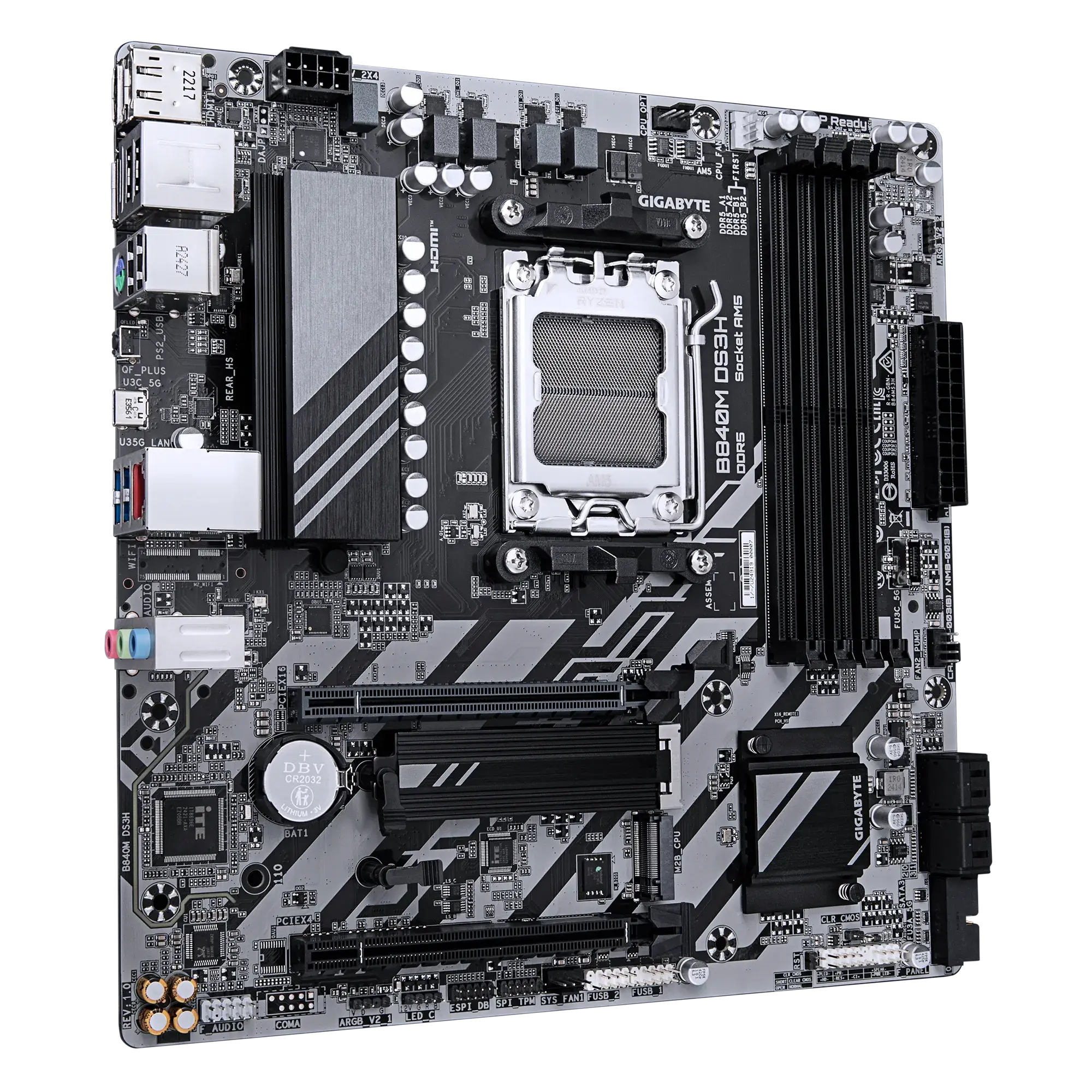 Материнская плата GIGABYTE B840M DS3H, AM5, 4xDDR5, PCIe4.0, HDMI+DP, 2xM.2, 2.5Gb LAN, mATX