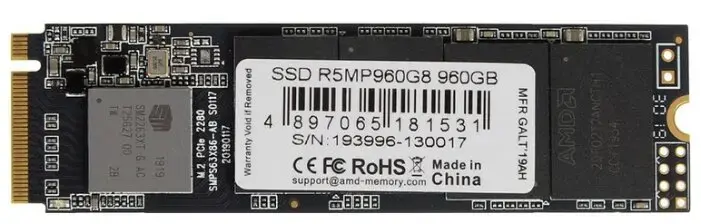Твердотельный накопитель 960GB SSD AMD RADEON R5 M.2 2280 PCl-E R2100MB/s, W1650MB/s R5MP960G8